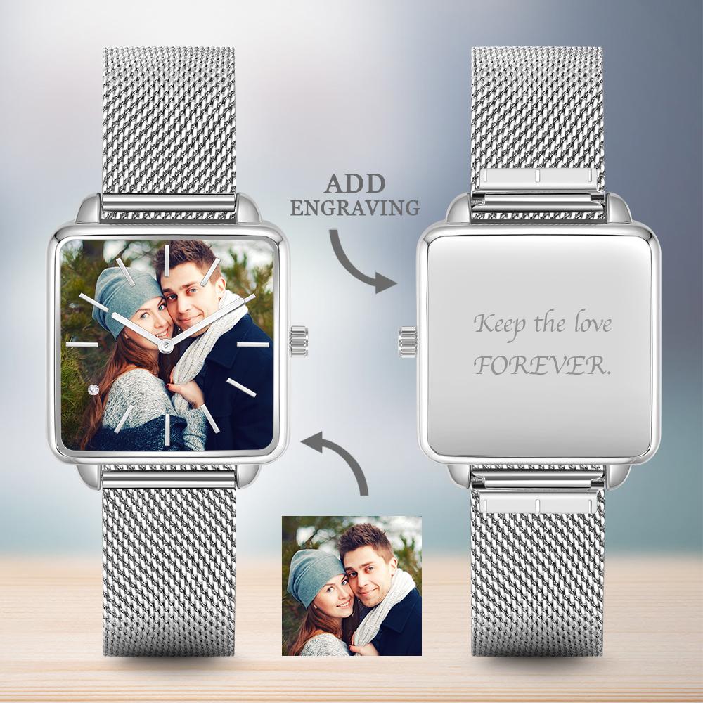 Custom Engraved Text Photo Square Watch For Women 24.6*24.6MM