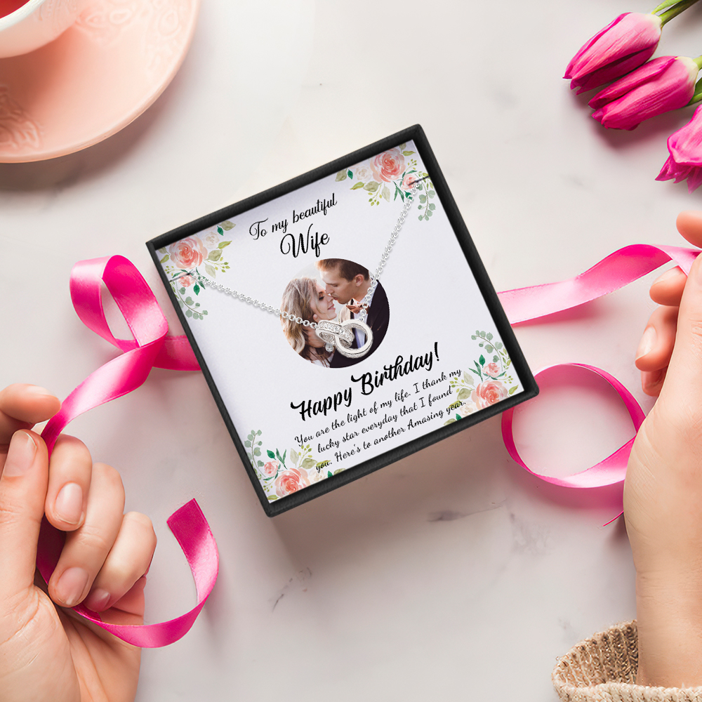 Double Rings Necklace with Photo Message Card Happy Birthday Gift for Wife