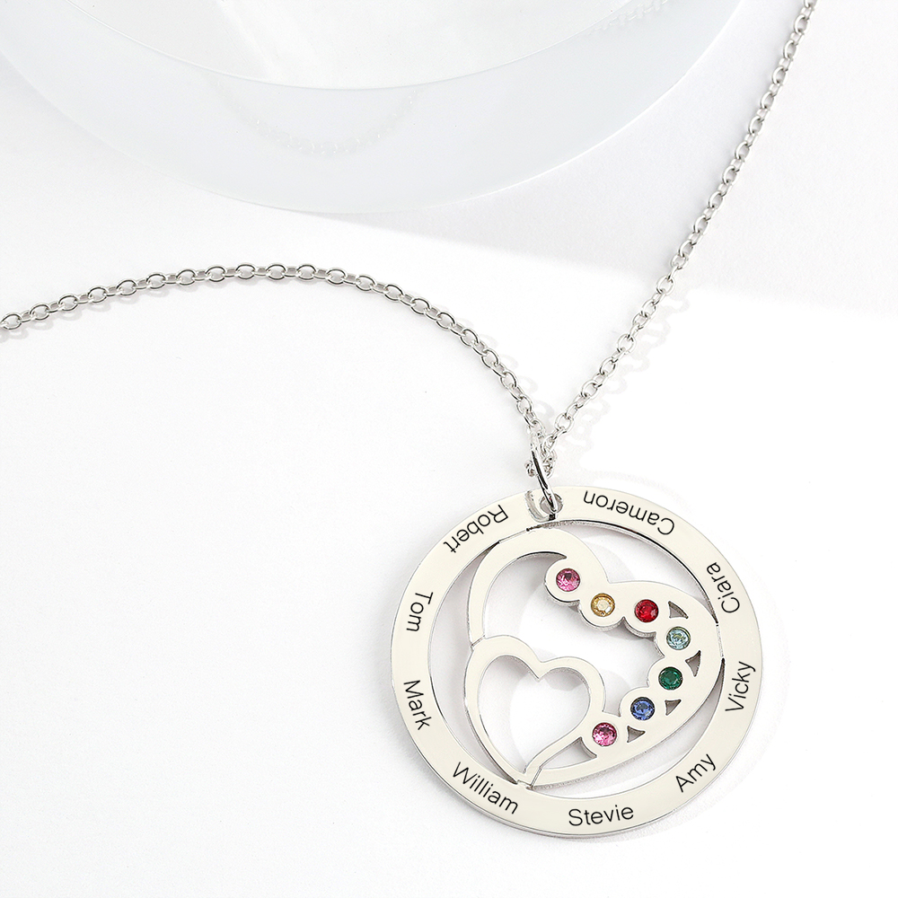 - Heart shaped design, with 1-7 birthstone, personalized multiple names