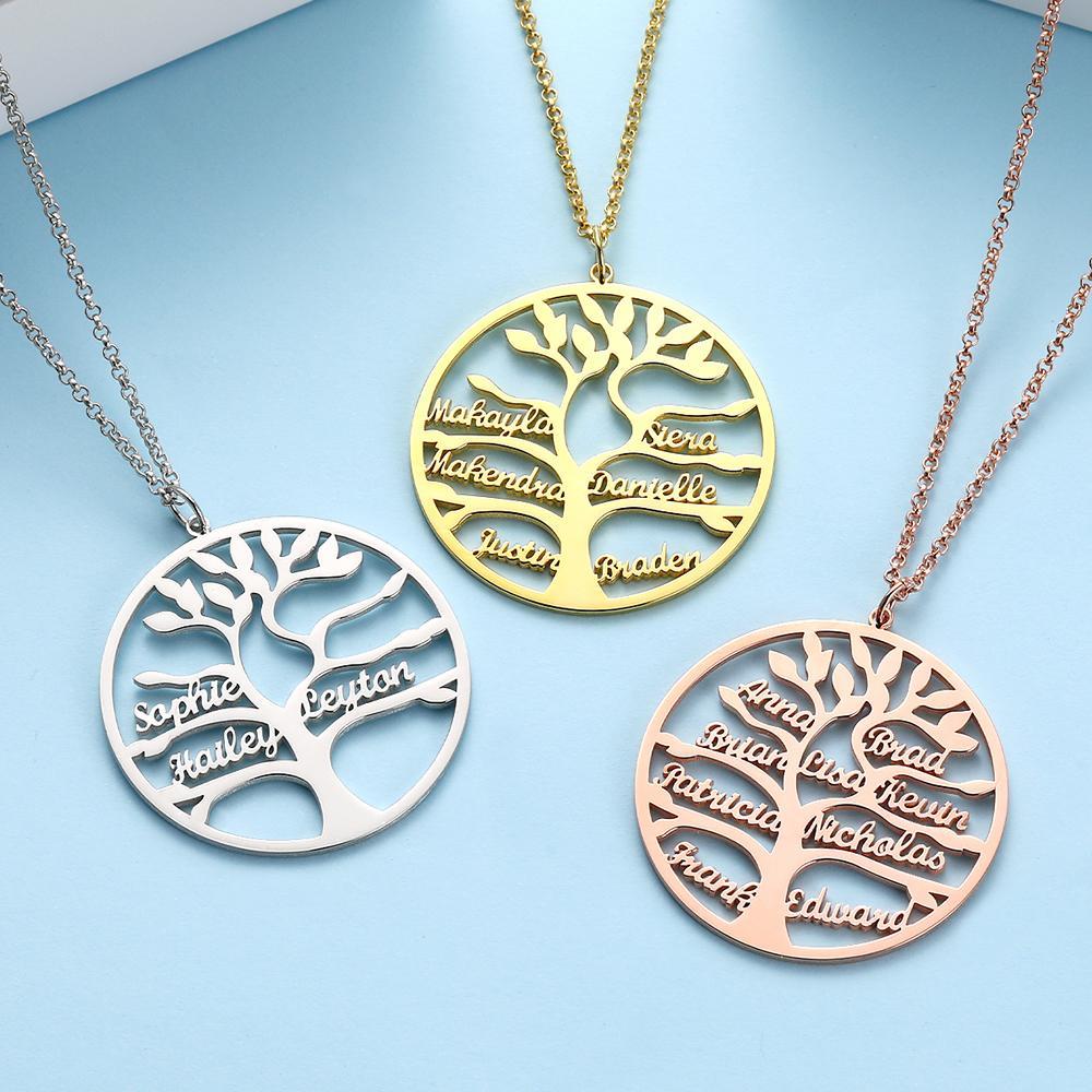 Add some special custom necklaces to your jewelry box. Available in tons of gorgeous designs, this necklace can be customized with 1-9 names and the family tree round pendant design is unique and stylish for multiple occasions.